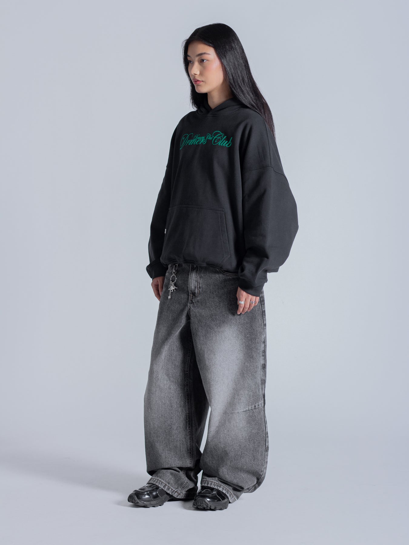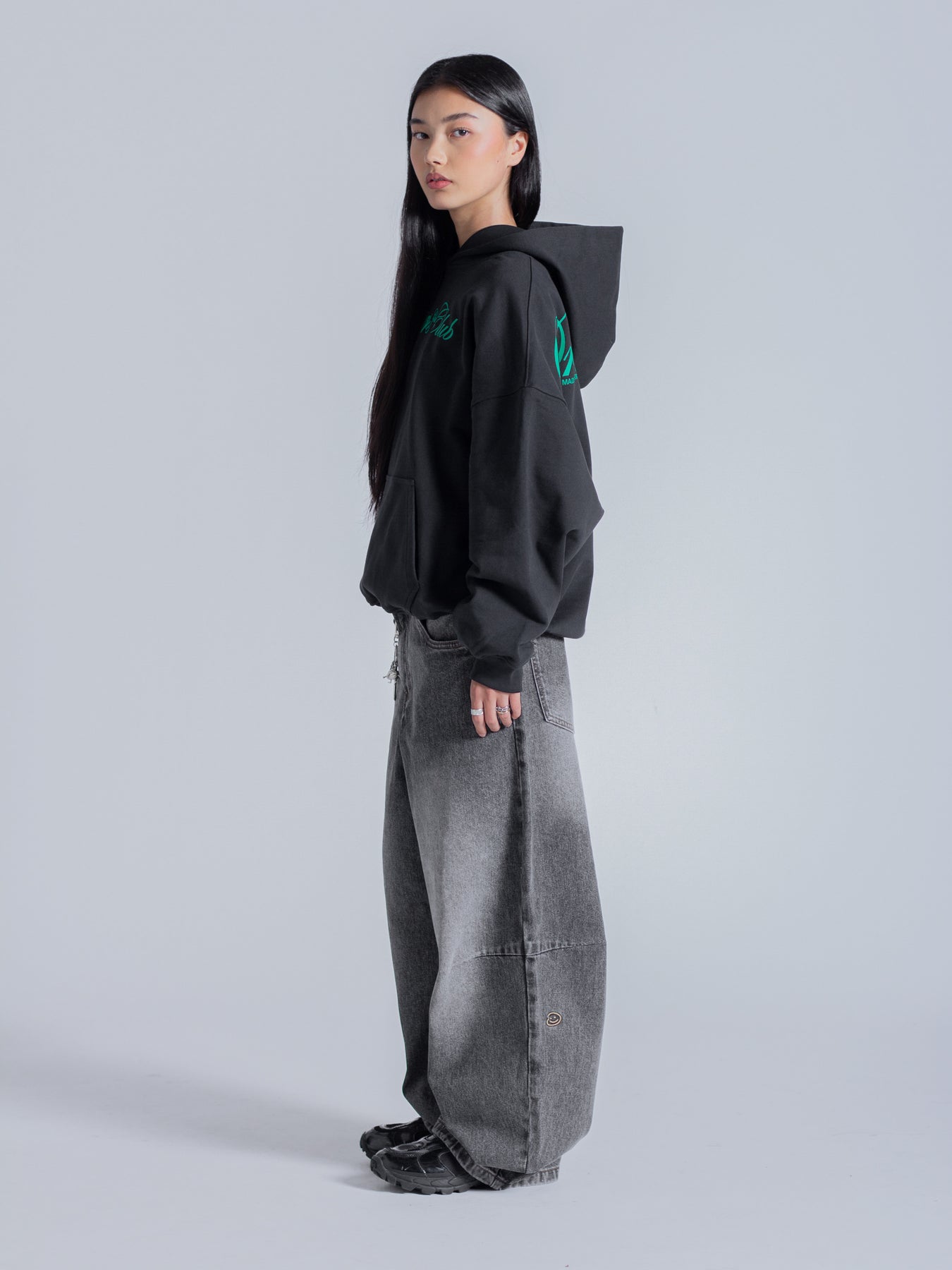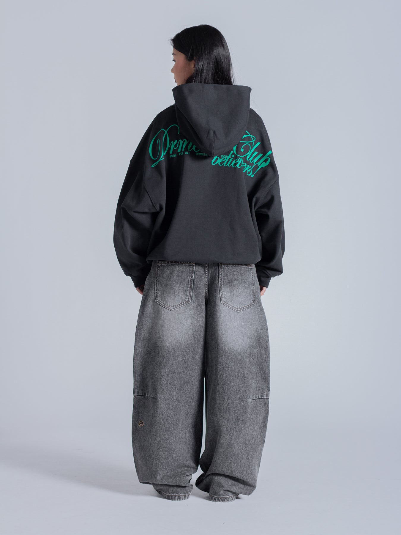 SCRIPT TEXT HOODIE - FADED BLACK