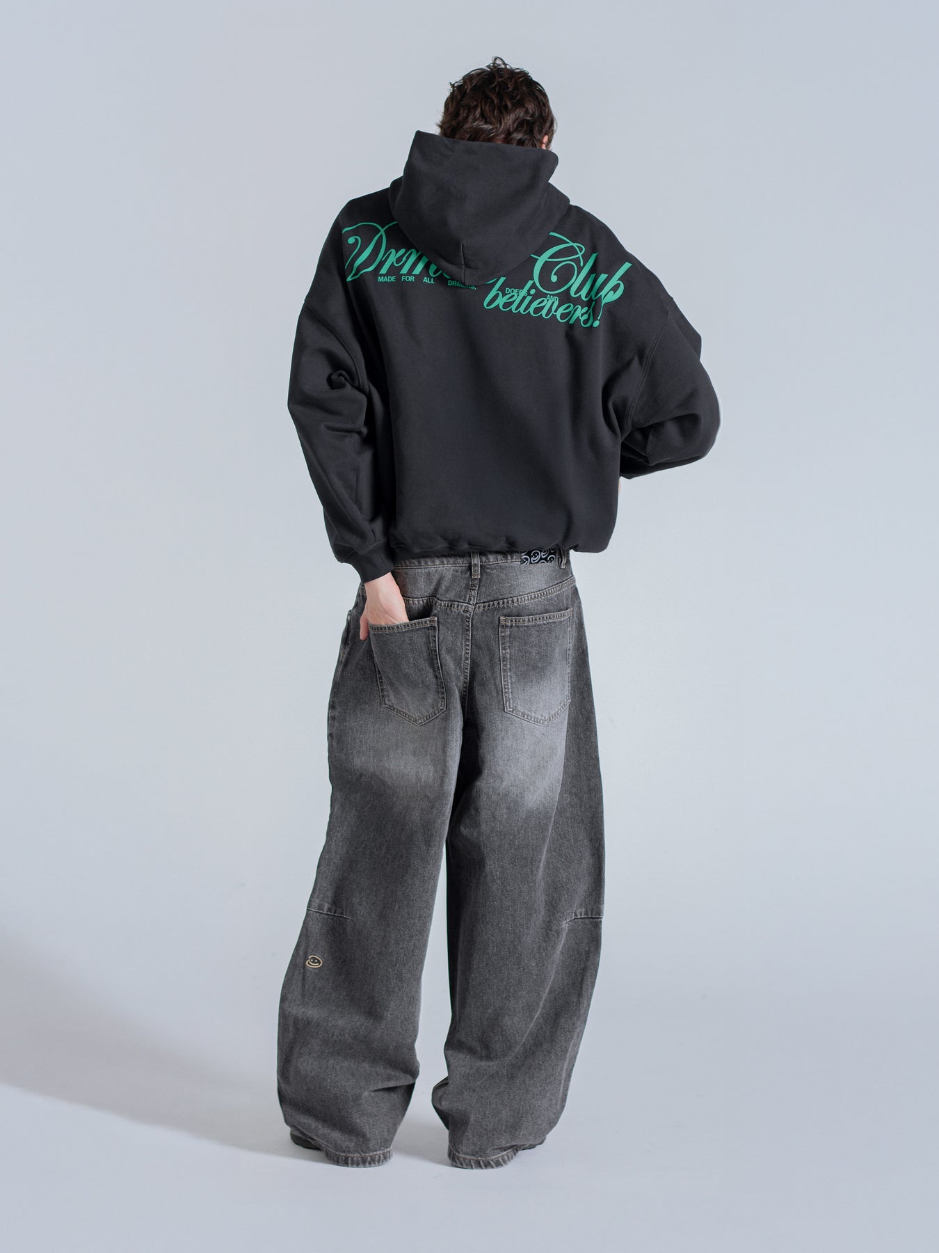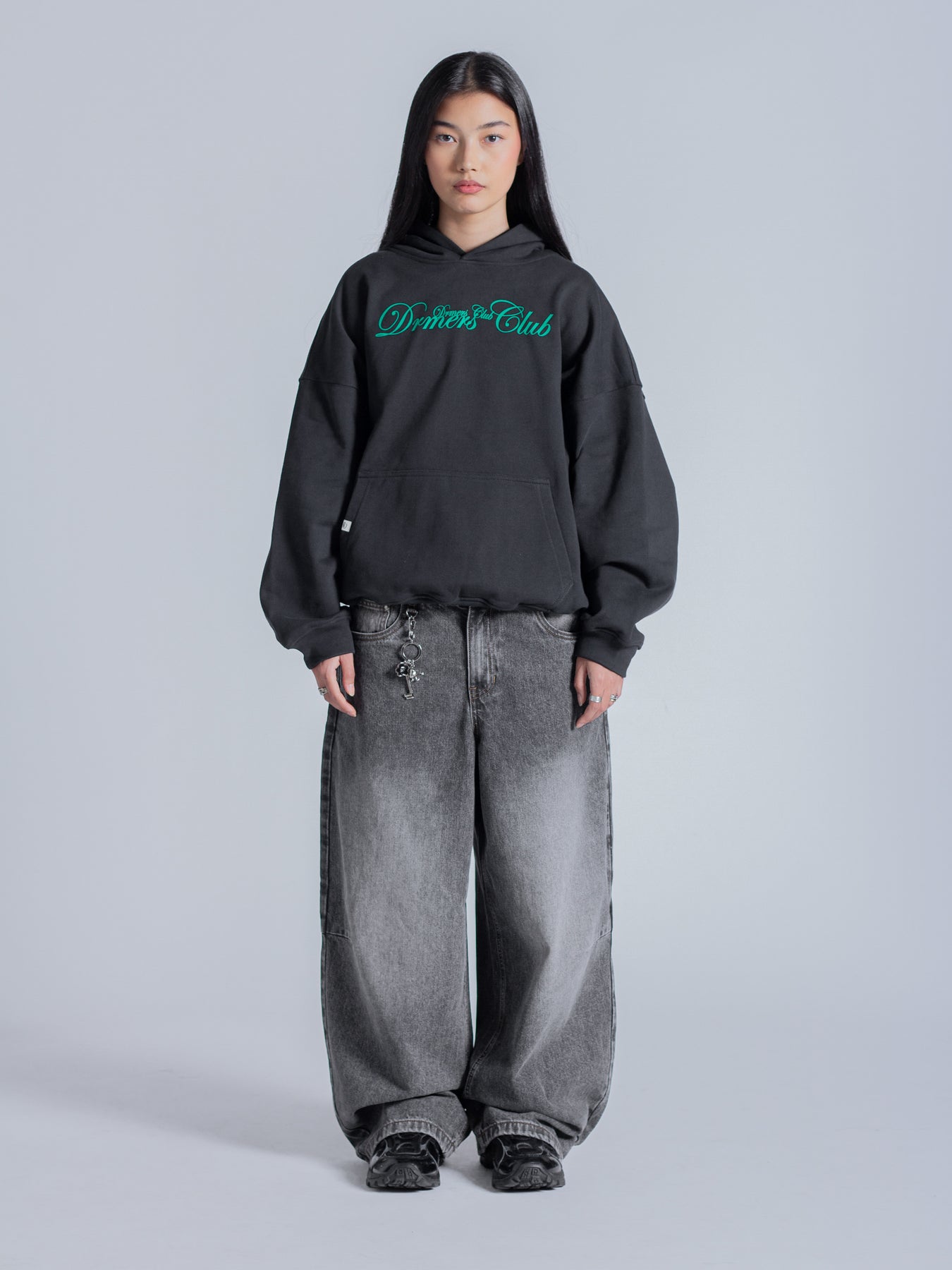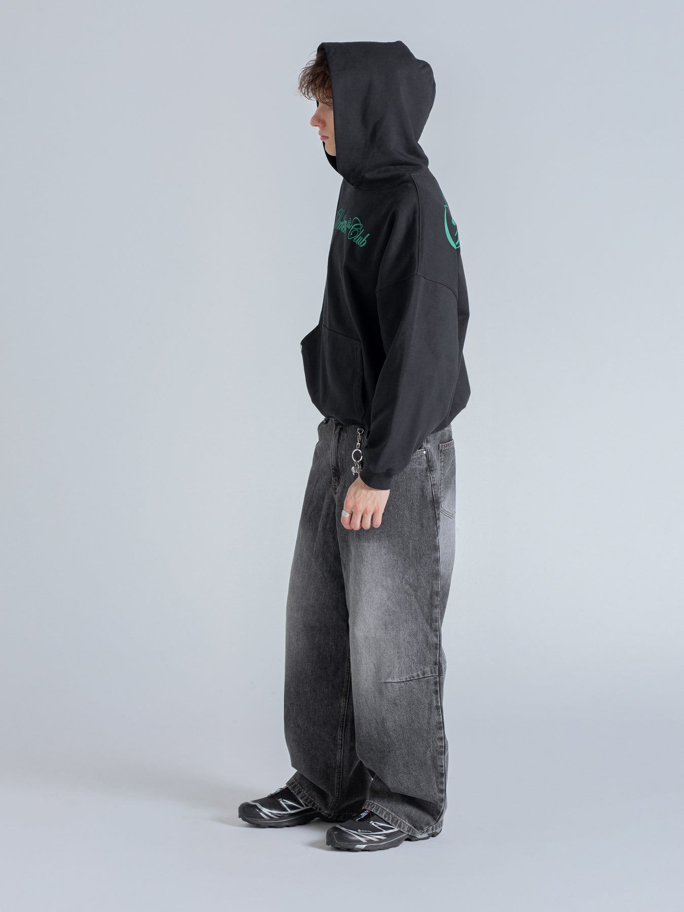 SCRIPT TEXT HOODIE - FADED BLACK