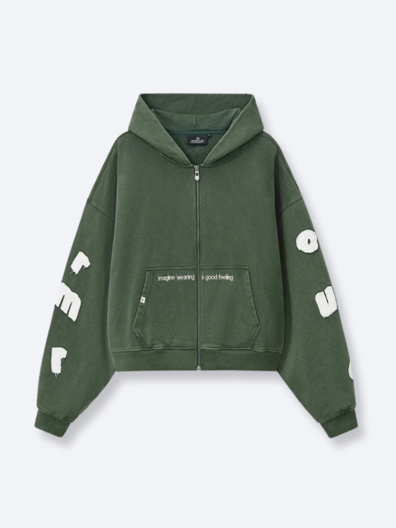 a fun, playful zip up, finished with an applique logo design on the sleeves