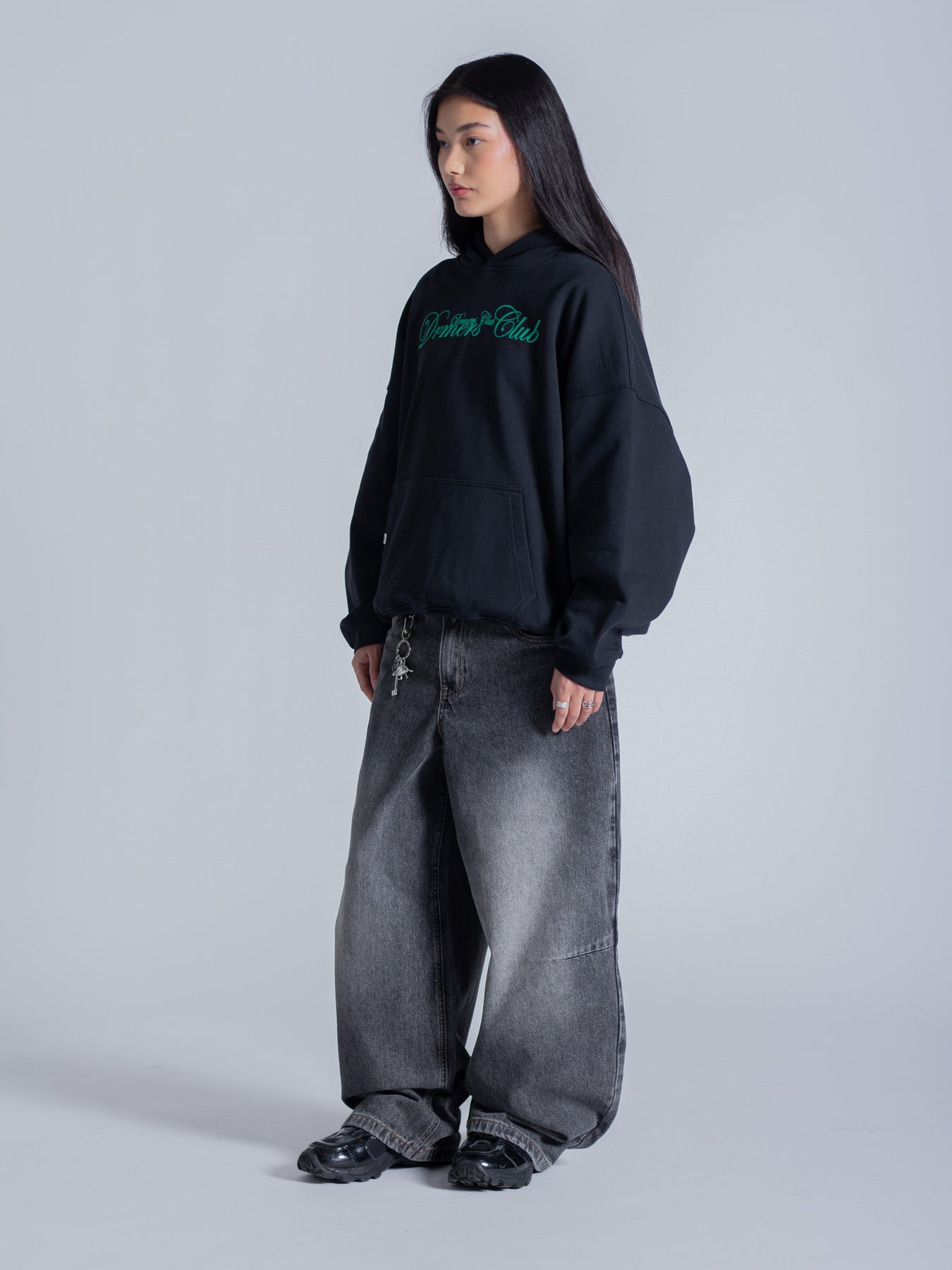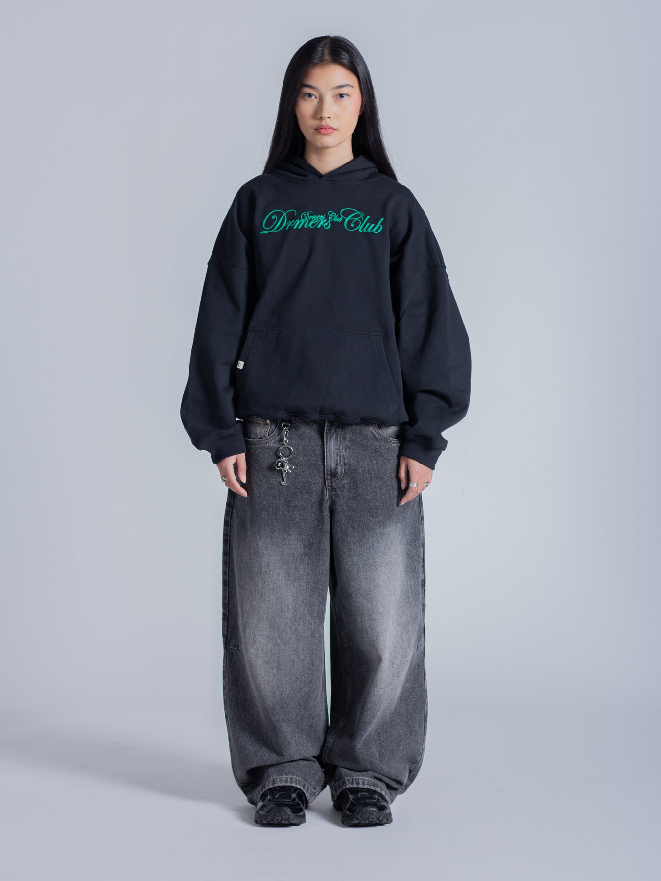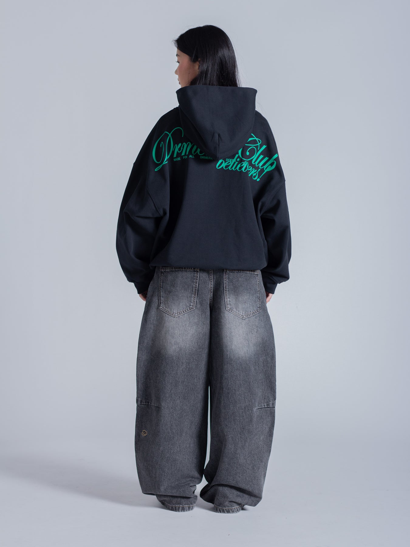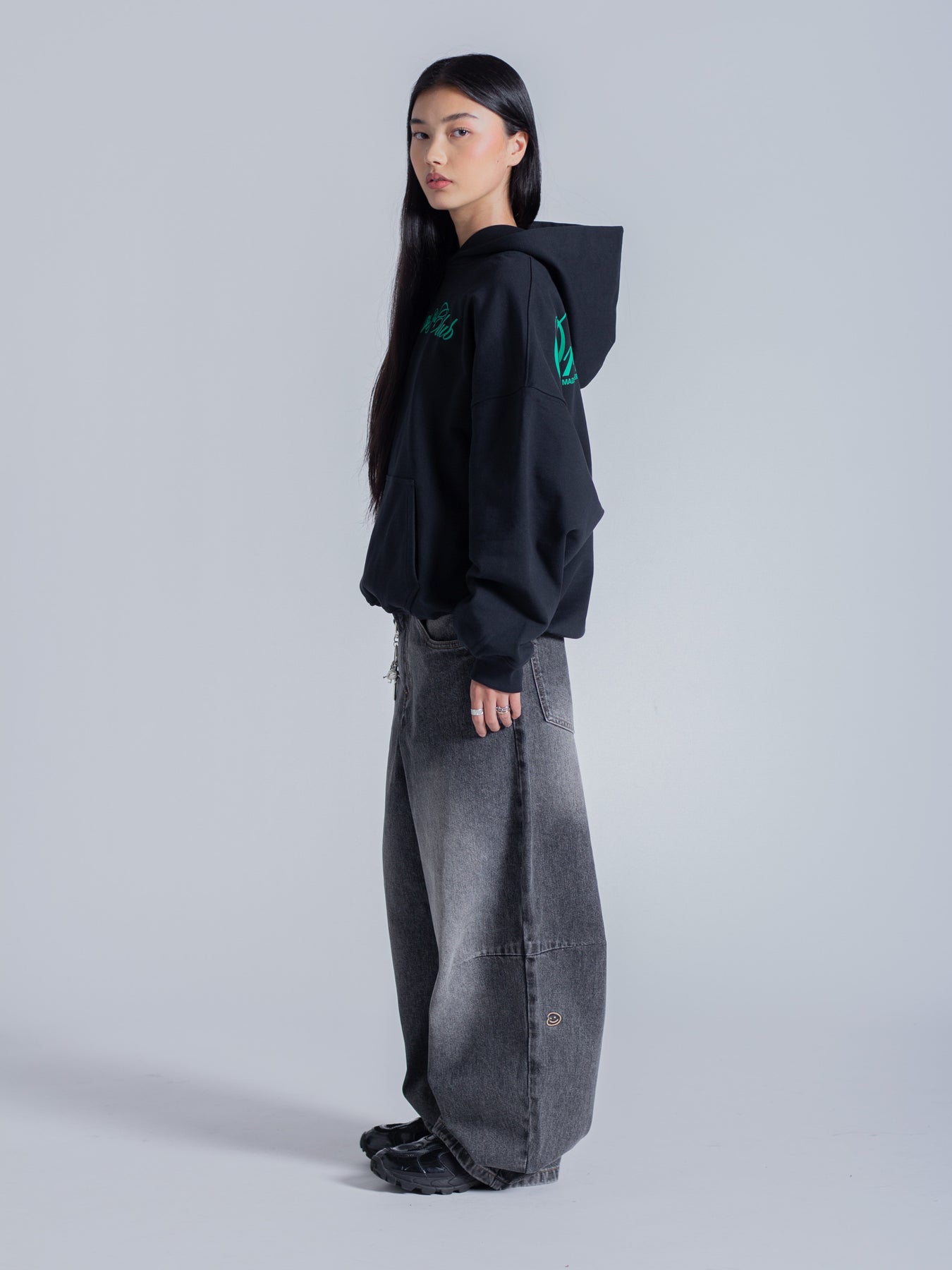 SCRIPT TEXT HOODIE - FADED BLACK