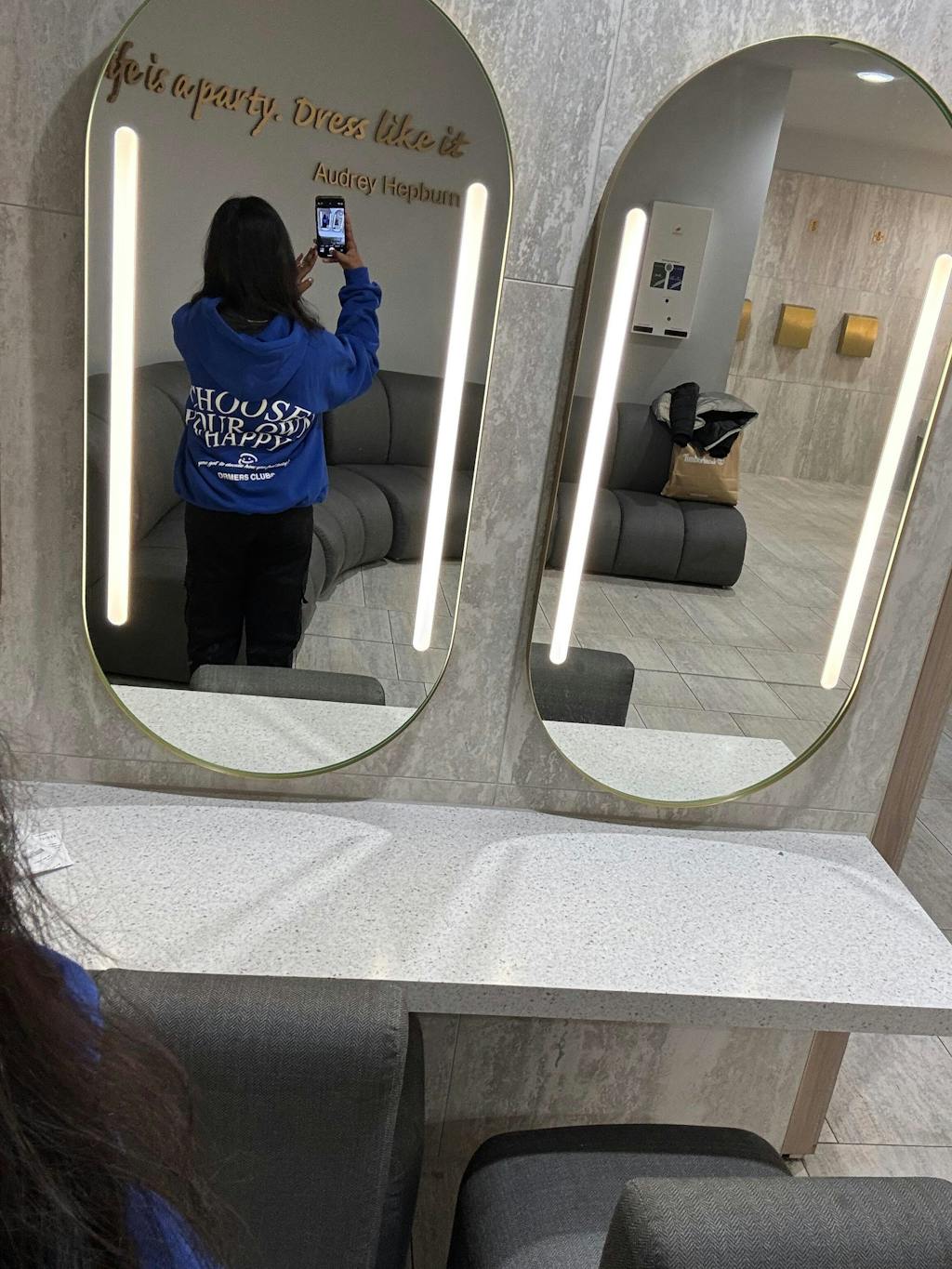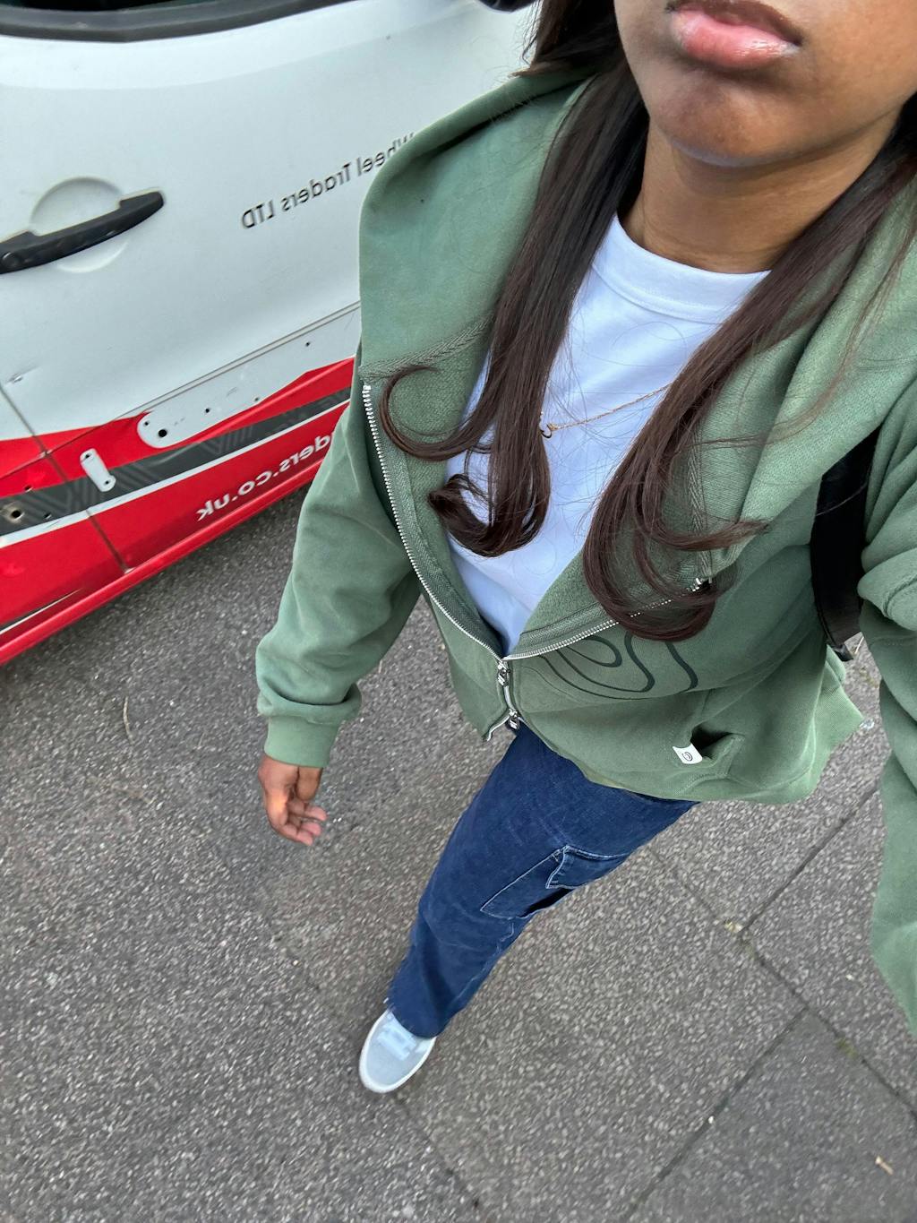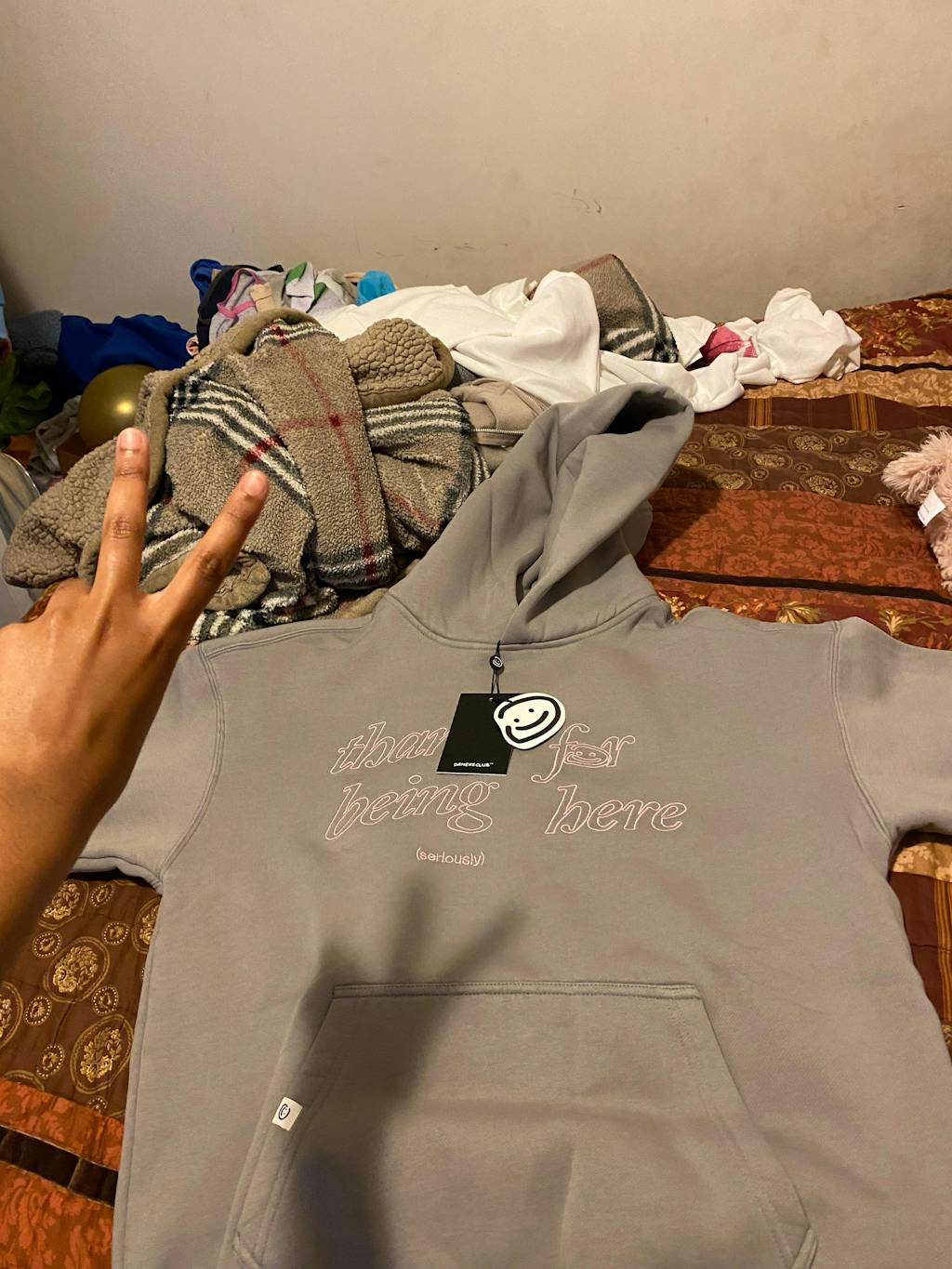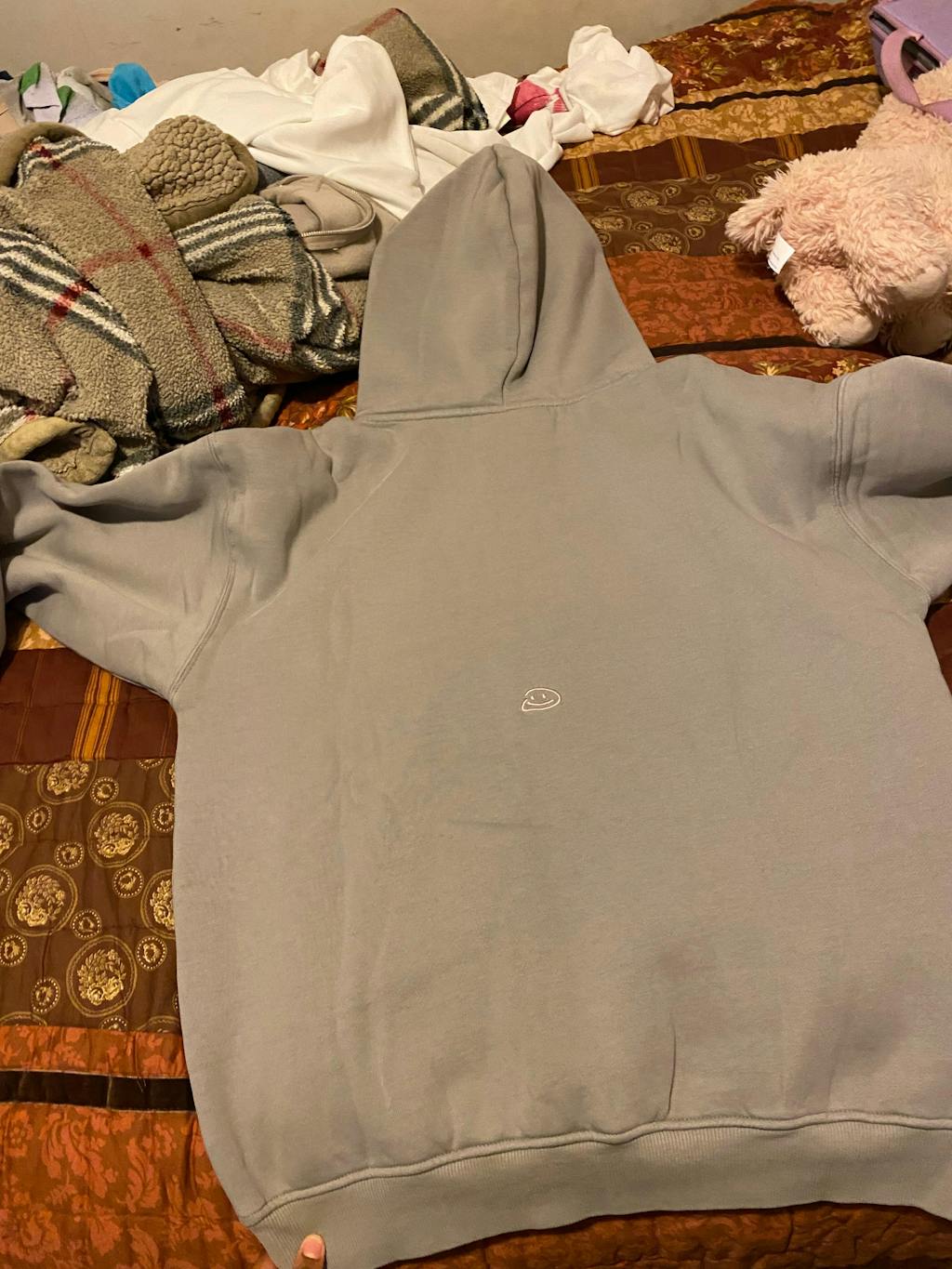 I love this hoodie it’s so cute. The material is thick and the words are embroidered which I really love. This is perfect for the new school year. I would say I should have sized up but at the same time it’s not a boxy hoodie. Overall love this hoodie💖