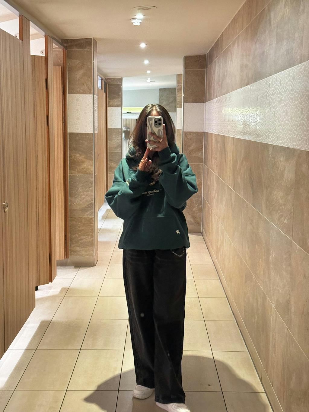 I was waiting for so long for the Essential Boxy Hoodie to come back, so I was surprised that it came out with a double zip up version. And, I love this even more. Zip up hoodie is my preferred version than no zip because if it gets too warm, I can open it up (I feel like you read my mind, so thank you very much for granting my dream). It is made with high quality heavy fabric, and with just the perfect crop; therefore, I suggest just stick to your usual size because this is already in a relaxed/oversized fit.