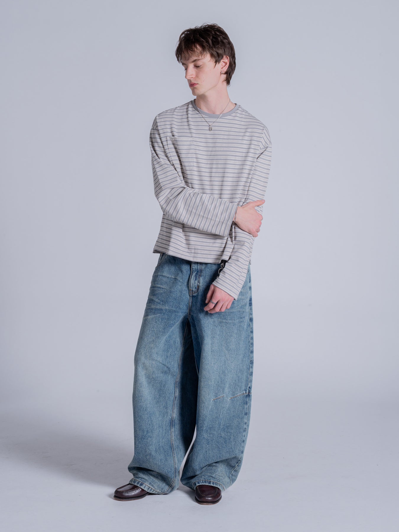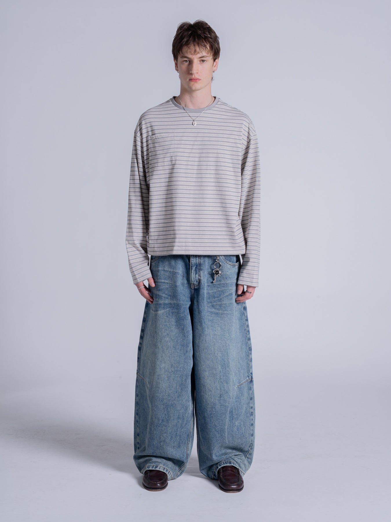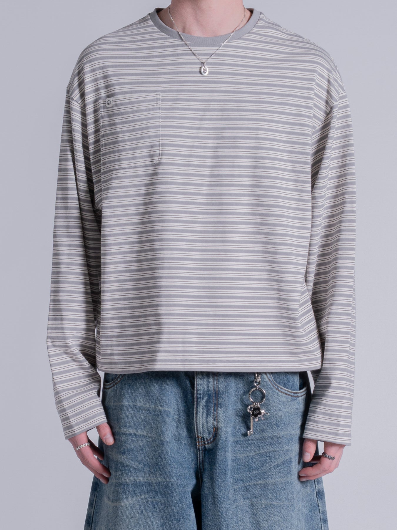 POCKET STRIPED LONG SLEEVE - LIGHT GREY
